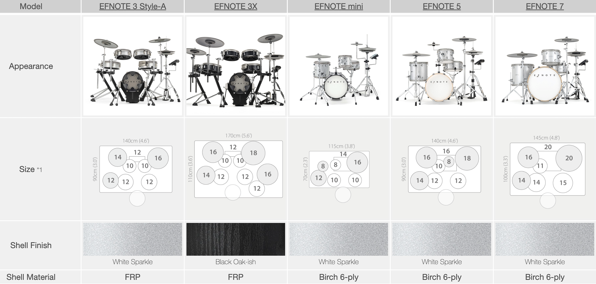 EFNOTE 3A 搭載的音源機,內建多達 17 組預設鼓組 及 4 組使用者自訂鼓組,提供了極為豐富且逼真的音色: